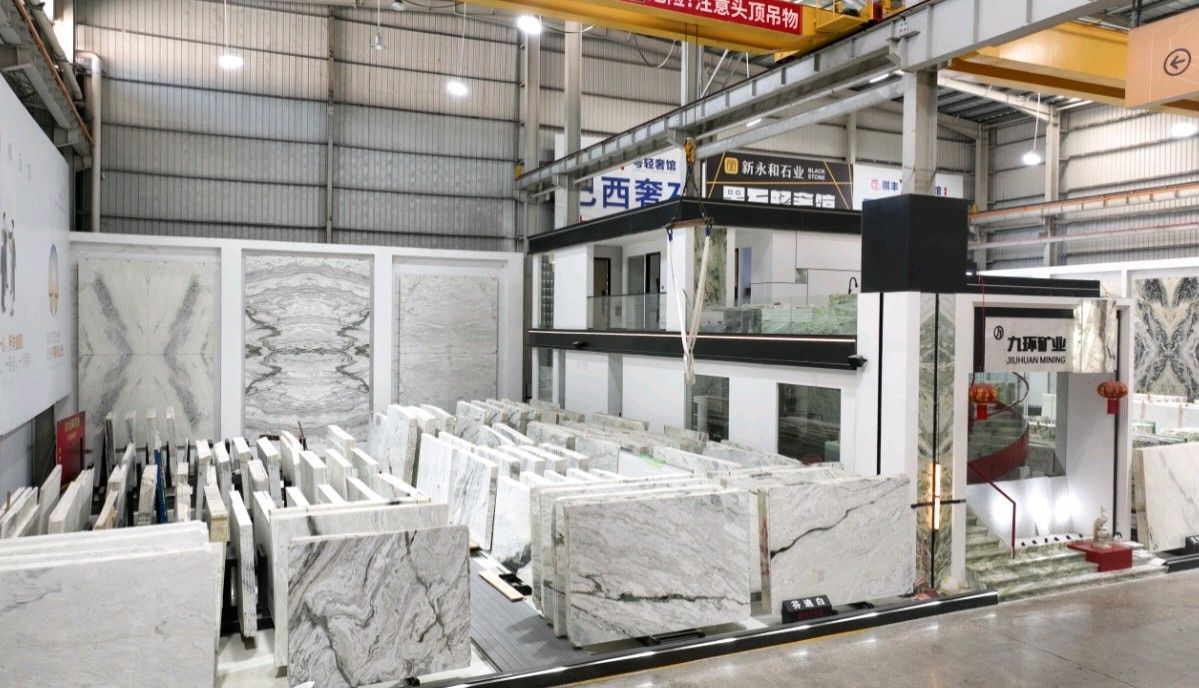 公司創(chuàng)建初期駐點于東升大板市場,隨著市場需求,不斷進行戰(zhàn)略布局,2016年駐點高時大板市場,2017年駐點藝興大板市場,同時期增加澳磊門店,2018年,九環(huán)增加遠達專場,擁有數(shù)百個架子位,憑借優(yōu)質(zhì)服務(wù)深受客戶認可與信賴。2019年,九環(huán)于順盛增加加工點,主要生產(chǎn)“水晶木紋”,年產(chǎn)量達15萬平方米。該年底順勢而上,增加均利廠、新寰宇廠及振南廠三個石材加工廠,并不斷拓寬市場品類,由原先單一的“水晶木紋”,又增拓“印度藍金沙”與“土耳其星月白”兩個大理石品種,年產(chǎn)量接近30萬平方米,公司經(jīng)營得到進一步優(yōu)化。2020年九環(huán)石業(yè)進軍南翼點,新增“卡索灰”及“古堡藍”兩個大理石品種,擁有自己的大型礦山開采權(quán),自主開采銷售,產(chǎn)品種類大幅度增加,業(yè)務(wù)領(lǐng)域進一步拓展。2021年至今,九環(huán)石業(yè)新增澳盛點,新增品種“卡地亞灰”包礦。至此,九環(huán)石業(yè)在“世界石都”水頭戰(zhàn)略版圖囊括了澳盛、新寰宇、東升、遠達等駐點,具備良好的區(qū)位優(yōu)勢,發(fā)揮著重要的協(xié)同效應(yīng)。\