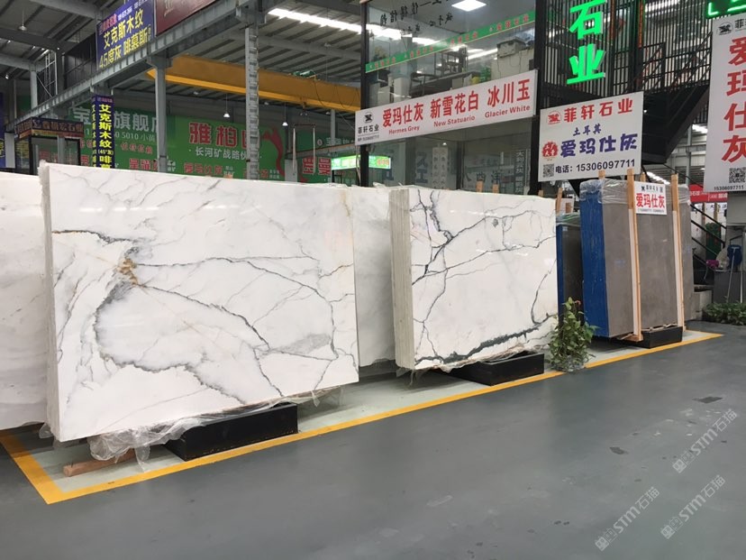 雪花白, 云灰, 圣托里尼灰, 水云紗, 愛(ài)馬仕灰位置: 海西石材城海五路D17, D18