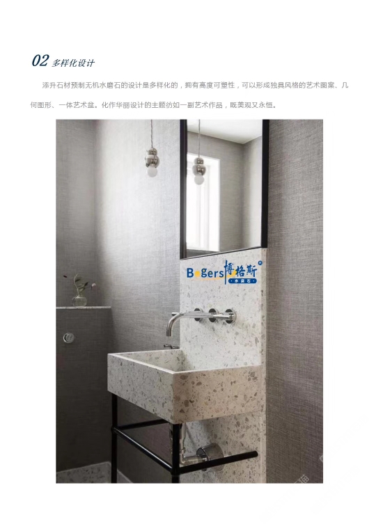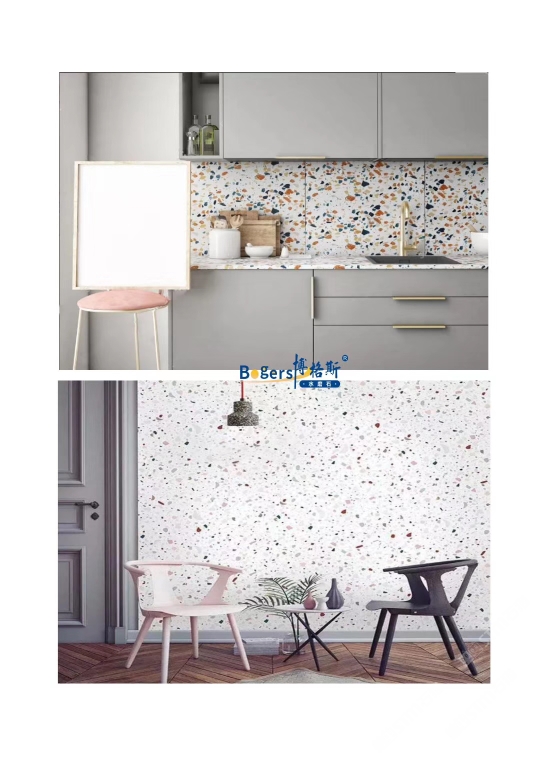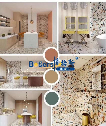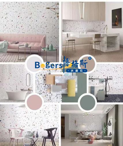 隨著工藝水平和材料品質(zhì)的巨大突破,新型預制無機水磨石采用環(huán)保型無機粘劑,不含樹脂膠水等,通過高頻高壓抽真空震動壓制而成,硬度更高更耐磨,施工更靈活方便。憑借其時髦大氣的設(shè)計呈現(xiàn)出一種慢慢的感