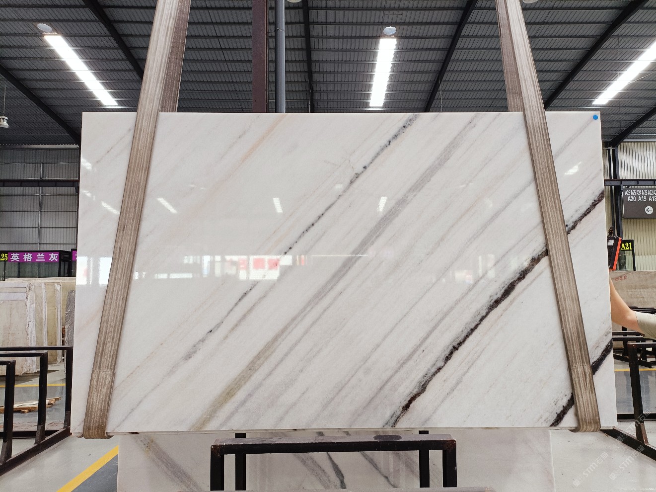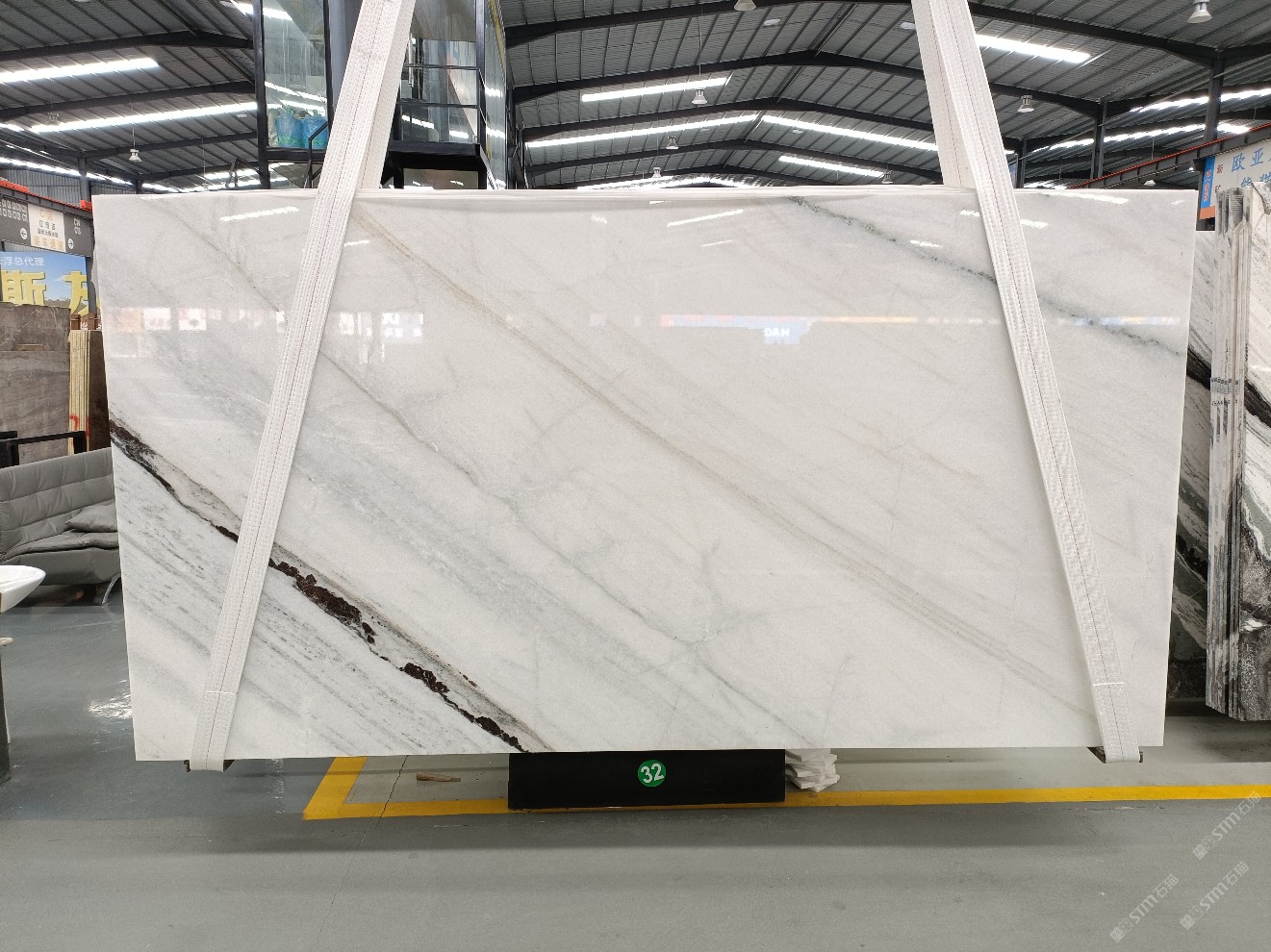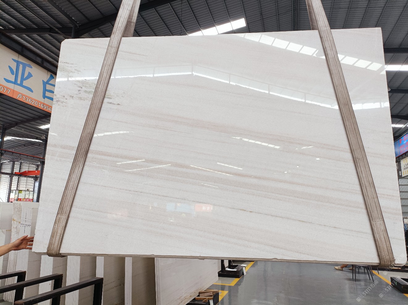 云浮站石材公司開發(fā)的歐亞白獨立礦山,專屬道路,礦口面積約 725 畝,證件齊全。今年礦口開采出直紋,亂紋優(yōu)質(zhì)大板材料,礦山采用單面墻平臺開采方式,10臺繩鋸、5臺鏟車、5臺勾機(jī)、一臺 30 噸叉車,共有職工40人,已有兩個開采平臺。礦山已開采多年,道路、設(shè)施都已成熟,現(xiàn)產(chǎn)能穩(wěn)定增長。品質(zhì)非常穩(wěn)定,一石兩面分別可以產(chǎn)出直紋和亂紋兩種紋路,材質(zhì)為細(xì)膩的玉質(zhì)品體。