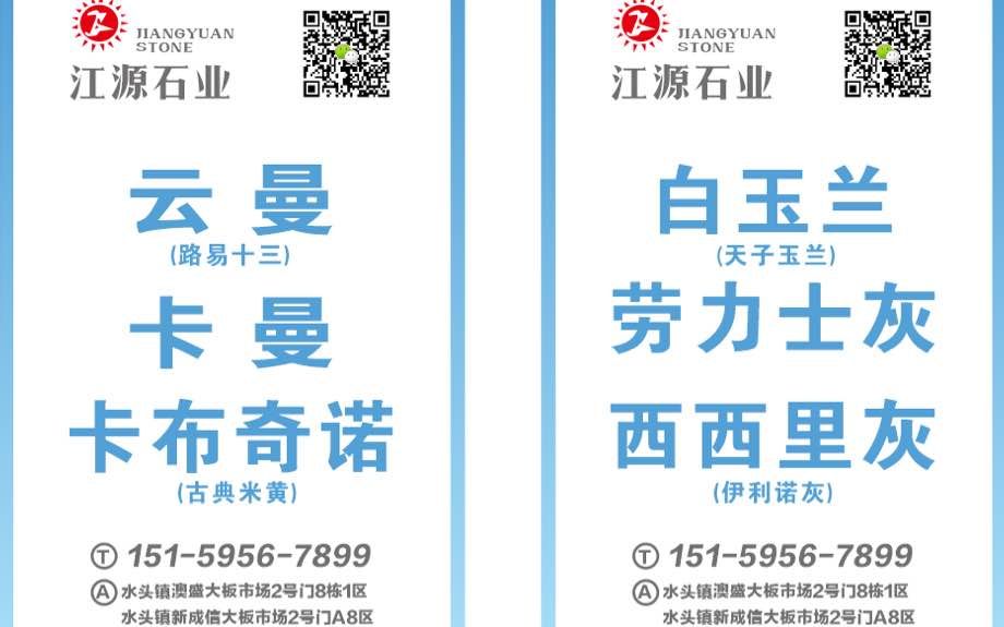 銷售點(diǎn):澳盛大板市場(chǎng)2號(hào)門8棟1-4區(qū),新成信2號(hào)門A8-10區(qū),官橋恒升、勝牌大理石廠