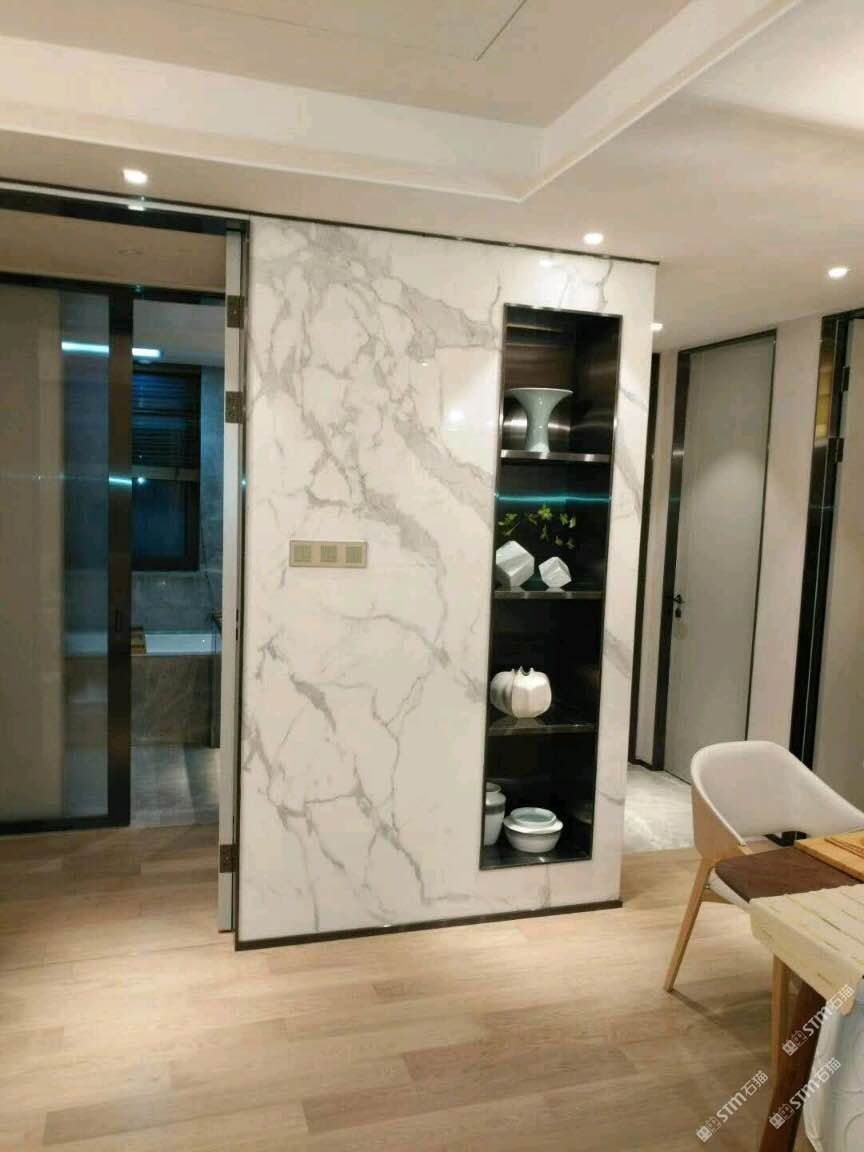 雪花白巖板背景墻案例
