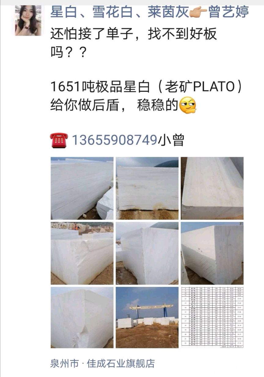 發(fā)布信息: 部分星白特價,有單子的詳談! 厚度: 1.5cm & 1.8cm 地址 : 南翼石材城三號四號倉三區(qū) 【佳成石業(yè)】 財富熱線:13489368683曾