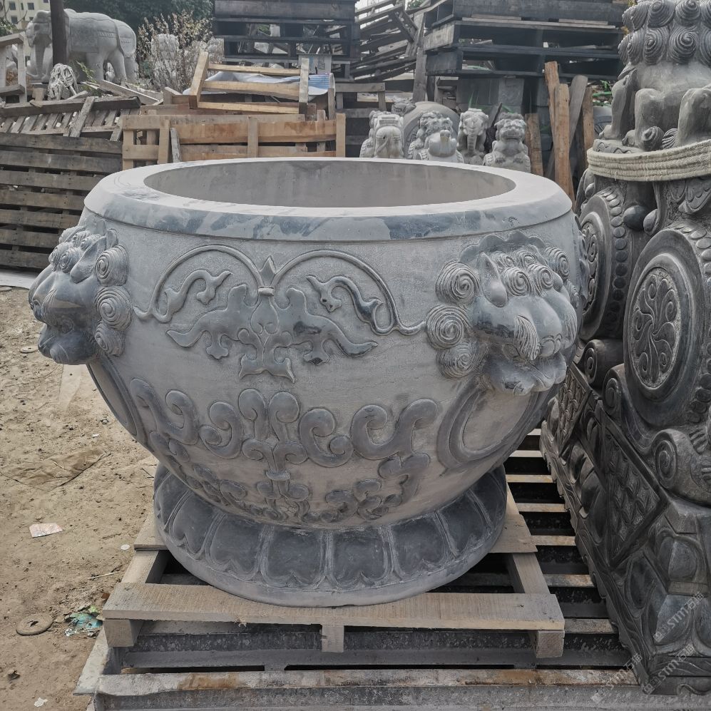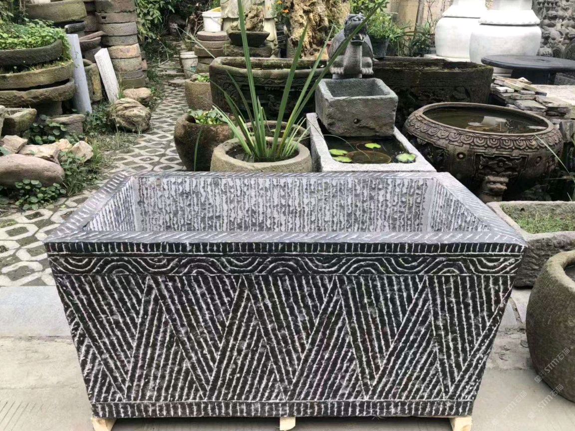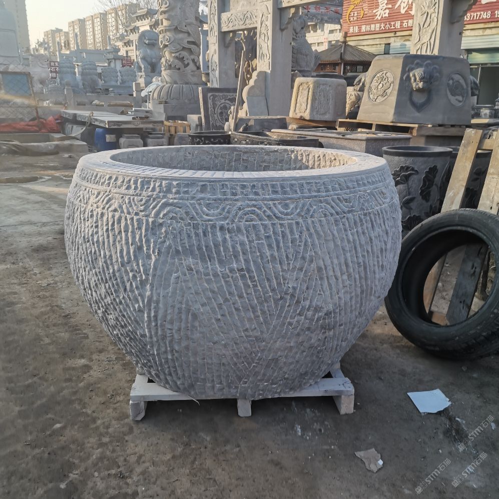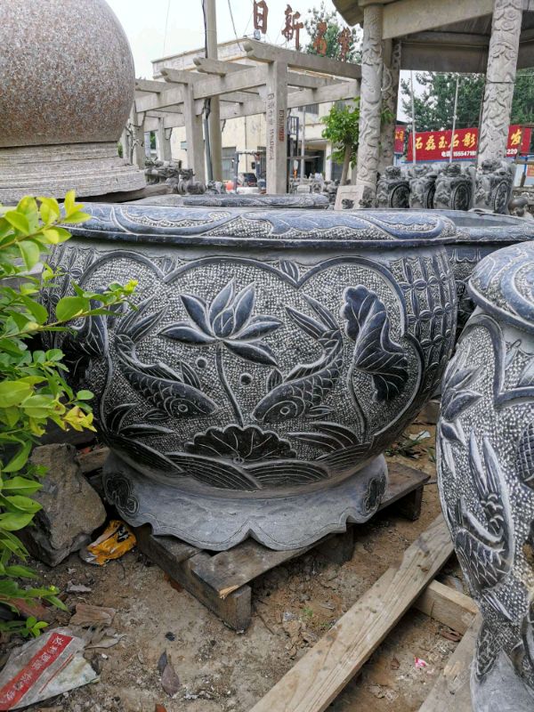 仿古青石魚(yú)缸聚寶盆,青石仿古石雕