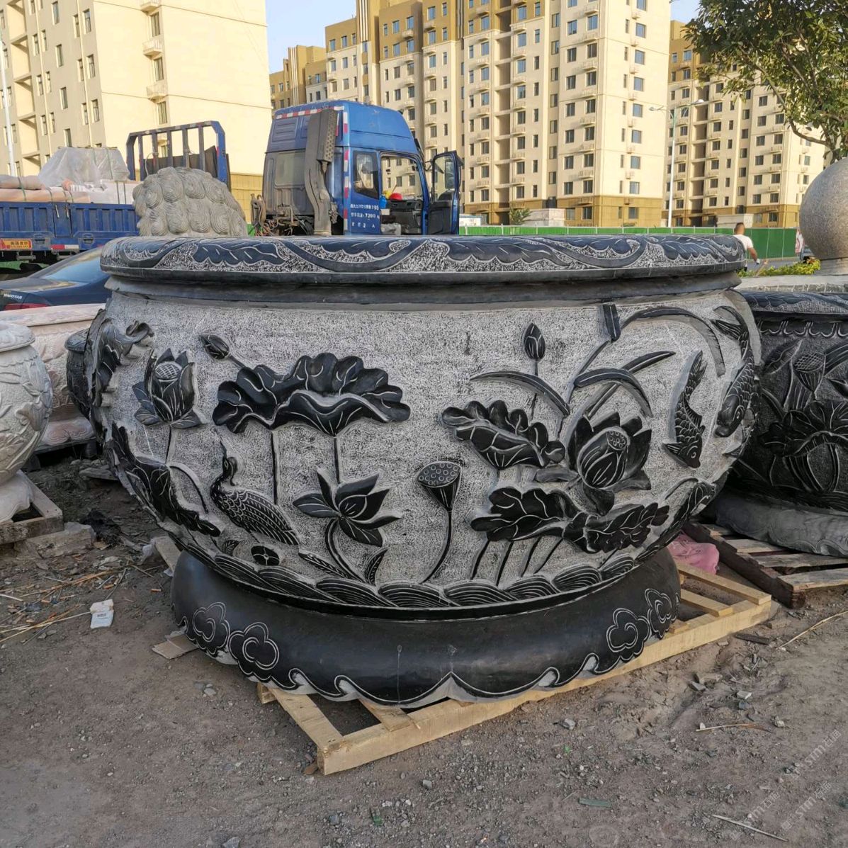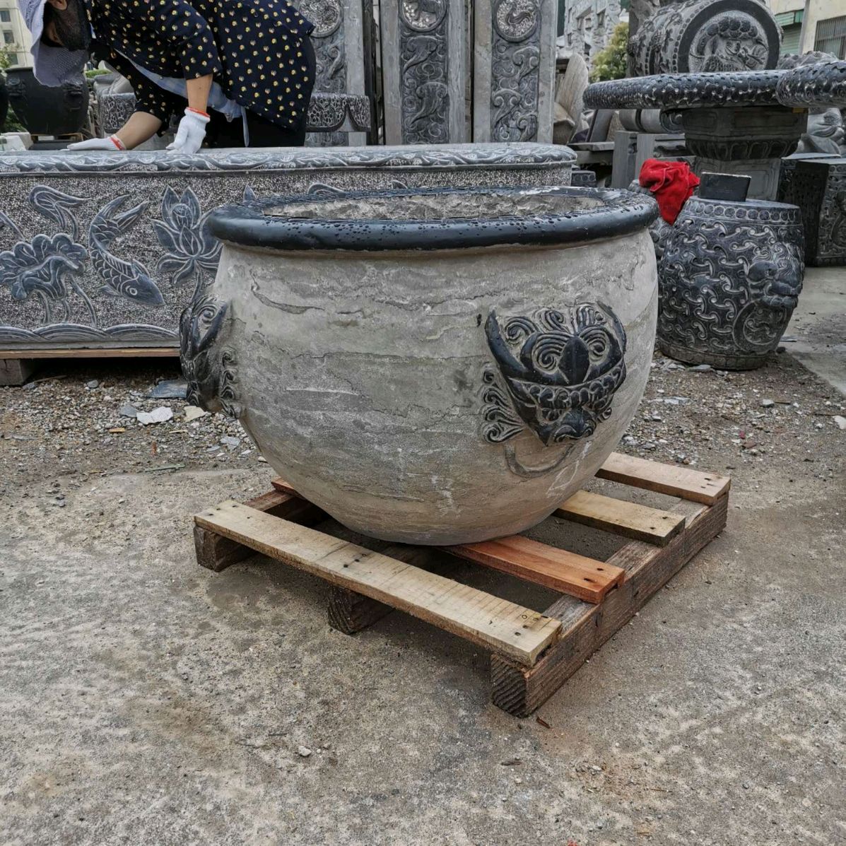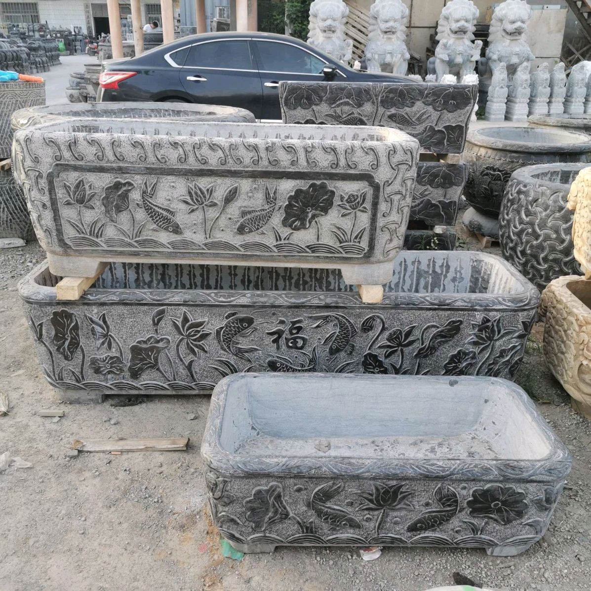仿古青石魚(yú)缸聚寶盆,青石仿古石雕