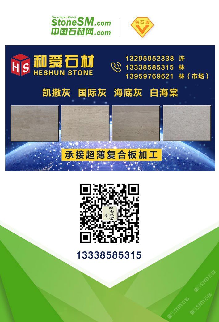 發(fā)布信息: 凱撒灰、白海棠、海底灰、維也納灰、白貝利/美國灰 灰色系列大板日日上新,貨源充足,新板精品不斷到場…… 地址:水頭鎮(zhèn)濱海工業(yè)區(qū)輝盛大板市場 歡迎您的光臨指導 服務熱線: 13295952338許 13338585315林 13959769621林