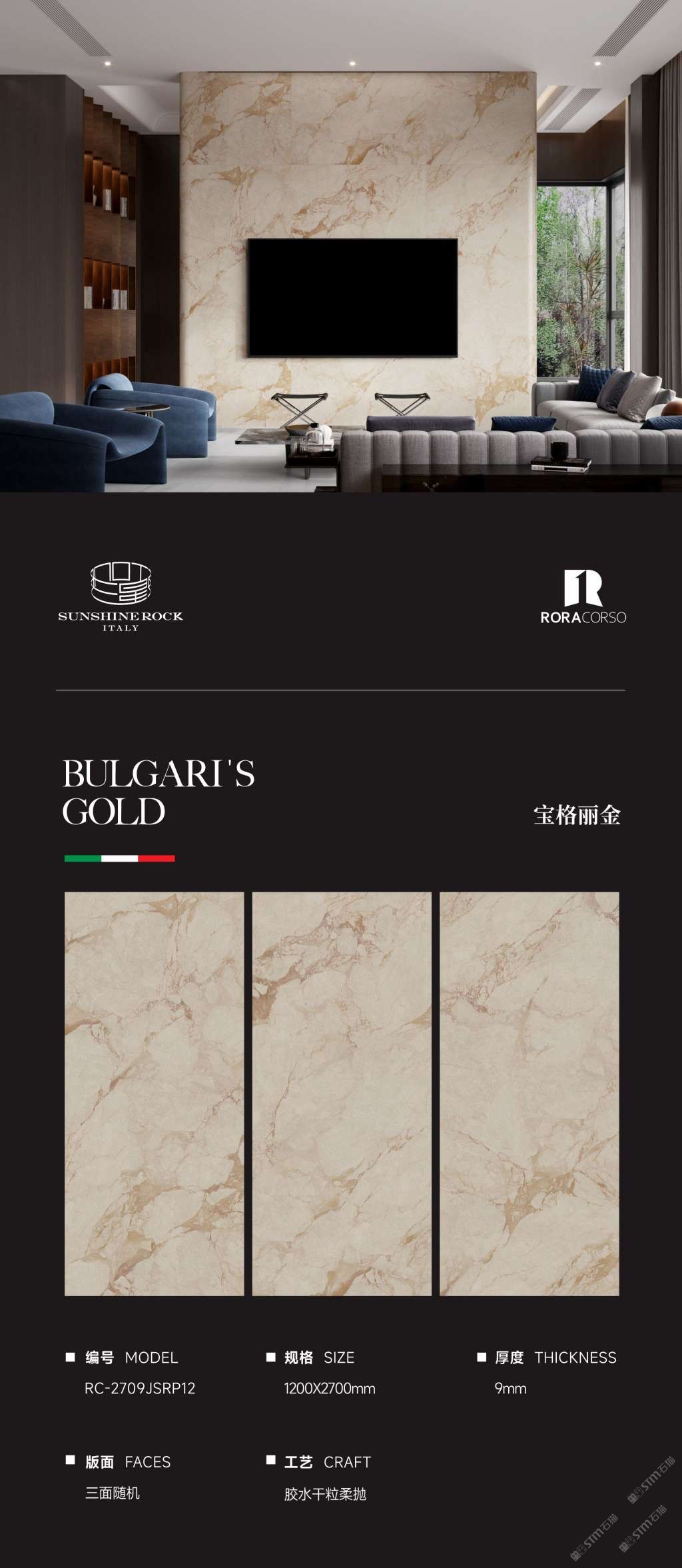 1200x2700x9寶格麗金巖板源頭廠家外貿出口