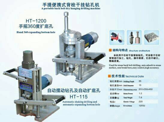 發(fā)布信息: 本機(jī)用于石材干掛背栓鉆孔,可自吸于石材背面進(jìn)行加工、鉆孔,操作簡便、孔徑不破口,精確度高。