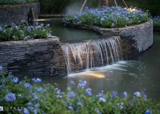 湖南長沙流水板波浪板水景駁岸河卵石景觀墻