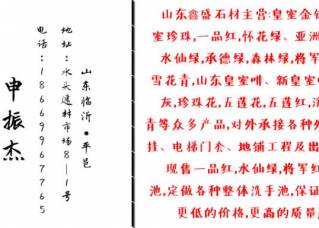 山東天橋石材主營產(chǎn)品:濟南青,山東黑,皇室珍珠,小金鉆,皇室金鉆(大黃),皇室啡,山東銹石,石島紅,皇室珍珠1企業(yè)地址:福建南安水頭鎮(zhèn)閩南第一建材市場37棟15號跟38棟21號